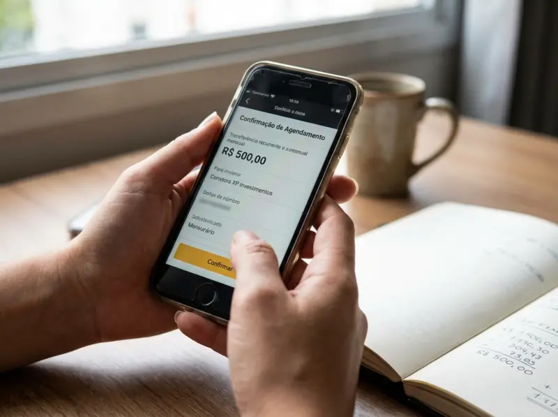 Dica adicional: configure um alerta no seu celular para o dia do aporte. Não para você fazer nada manualmente, mas para que você tenha consciência de que está acontecendo. Isso mantém o senso de controle sem exigir ação. Após seis meses de contribuições automáticas, você provavelmente terá esquecido que configurou, e esse é exatamente o objetivo.